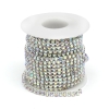 Цепь со Стразами Латунь, Цвет металла: Серебро, Цвет Страз: Кристалл АВ, Размер: Ширина: 3.5мм, Длина в Катушке: 9м Эти цепи, сделанные из Латуни, полны мягкого металлического сияния. С прозрачными и гранеными Стразами на цепях представляют собой изящное и сверкающее зрелище. Вы можете использовать эти цепи во всех видах художественных оформлений.