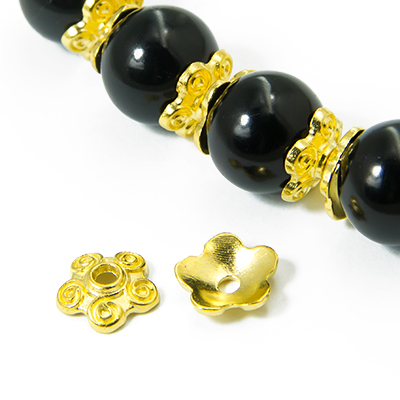 Капелюшки для намистин - всілякі декоративні розетки, обіймачі різноманітної форми та величини. Їх використовують для обрамлення намистин, а заодно і маскування кінців і вузлів нитки основи виробу.