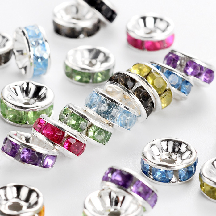 Спейсери (або намистини-розділювачі) – вони вставляють між більшими елементами для створення цікавих ефектів при чергуванні матеріалів. Вони можуть бути різної форми: у вигляді маленьких намистин, фігурок, пружин або паличок. Вони буває одне чи більше отворів.