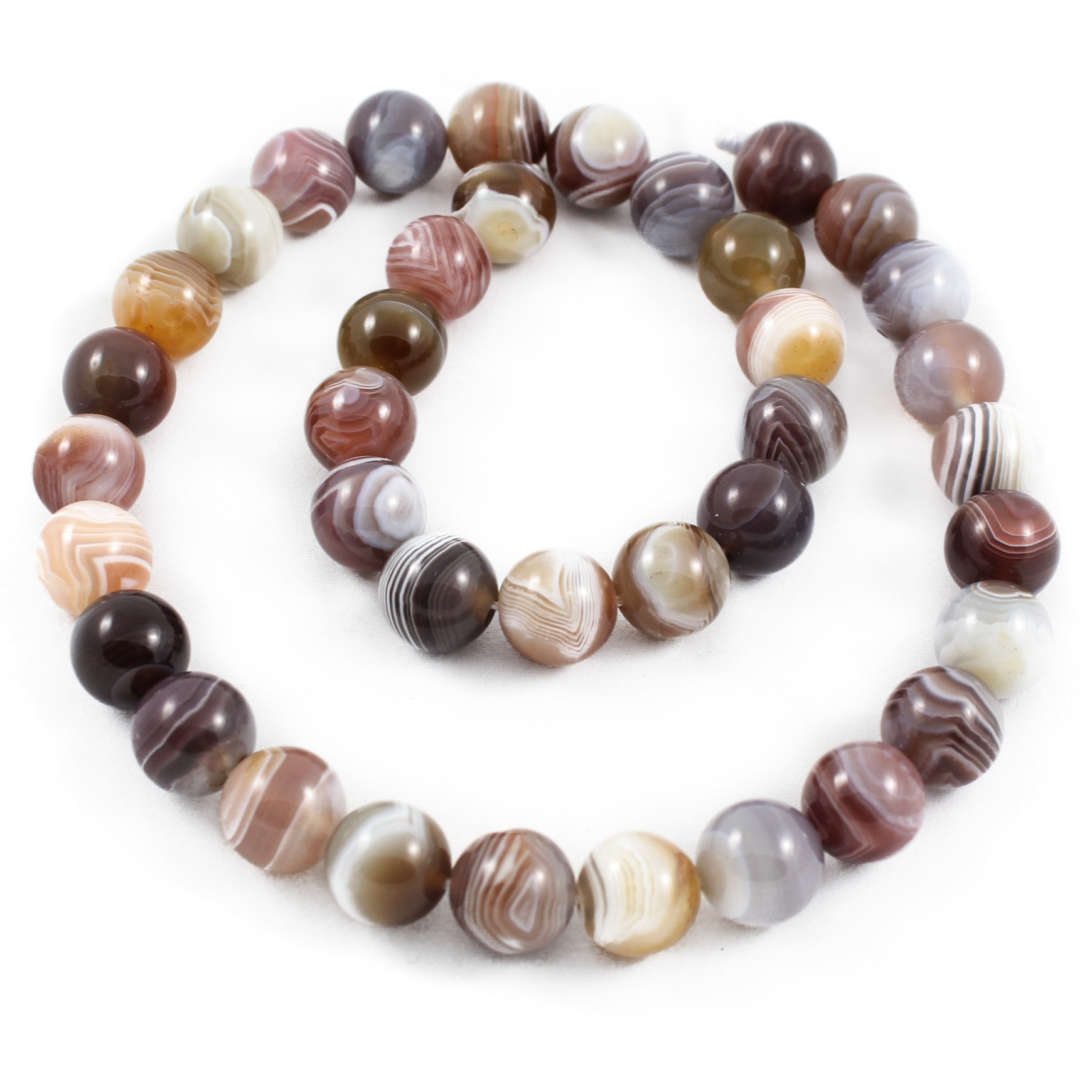 Цей камінь відноситься до мінералів халцедонів, але серед халцедонів агат має найбільш естетично привабливий і оригінальний вигляд. Його «родзинкою» є наявність малюнків, що складаються із замкнутих ліній, які мають такий самий сенс, як і кільця на деревному стовбурі. Кожна з ліній на намистах – це етап завдовжки сотні тисяч років, за які зароджувався цей мінерал. За рахунок різних фракцій у складі, колір його може бути різним.