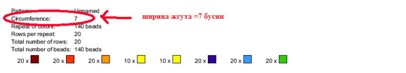 Насправді, тут все досить просто. У правому верхньому кутку ми бачимо, що ширина майбутнього джгута дорівнює саме семи бісеринкам.