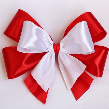 Найпростіша варіація банта, яку можна виготовити лише за кілька хвилин нескладної роботи. Для його створення знадобляться три відрізи стрічки двох контрастних кольорів, звичайні ножиці, клей або термопістолет.