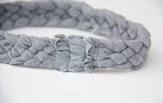 Сховайте шви за допомогою короткої стрічки з цієї ж футболки: її потрібно зав'язати на вузол або бантиком на місці з'єднання кінців кіски.