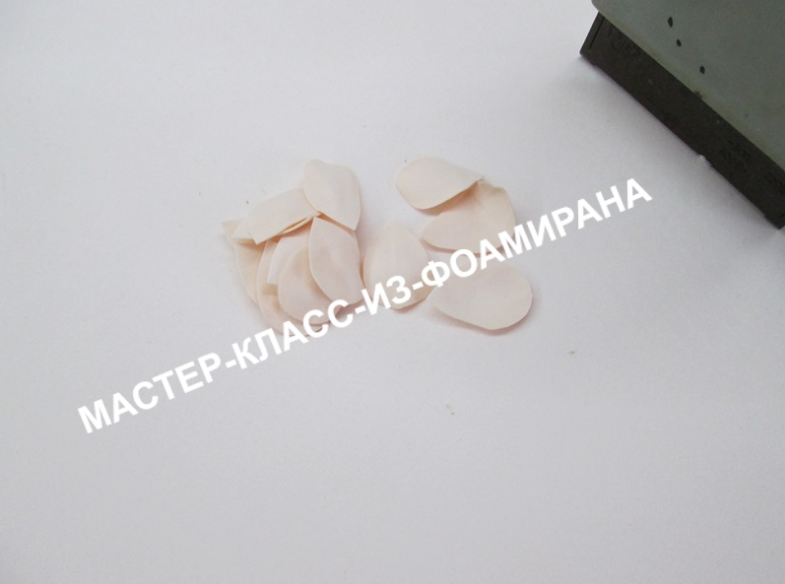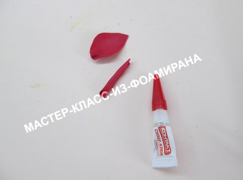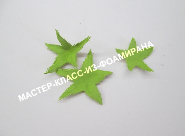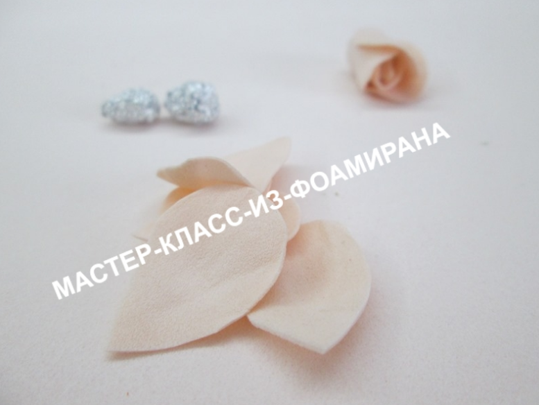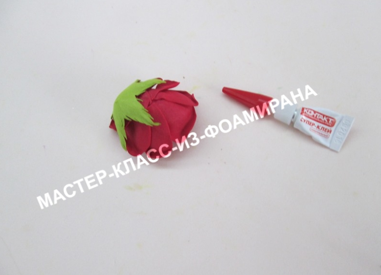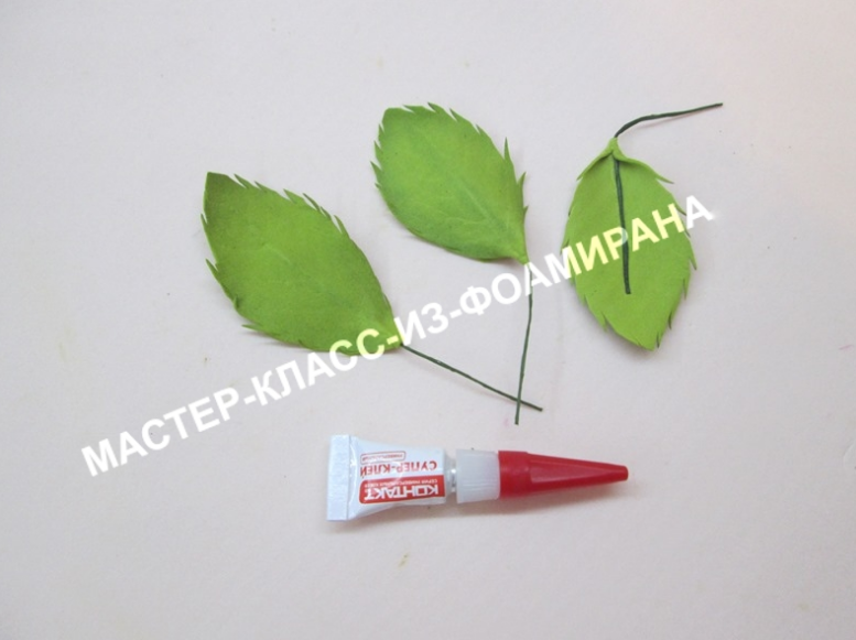 Виріжте з оливкового або зеленого фоамірану чашолистки, прогрійте їх праскою, перетріть пальцями і злегка розправте.