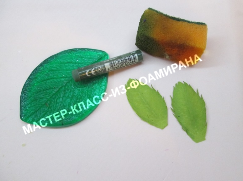 іранський фоаміран зеленого (або оливкового кольору) для виконання листочків та відповідних квітів на ваш смак для самих трояндок
