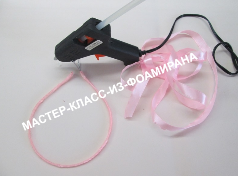 Обмотайте атласною стрічкою металевий обруч, періодично підклеюючи стрічку.
