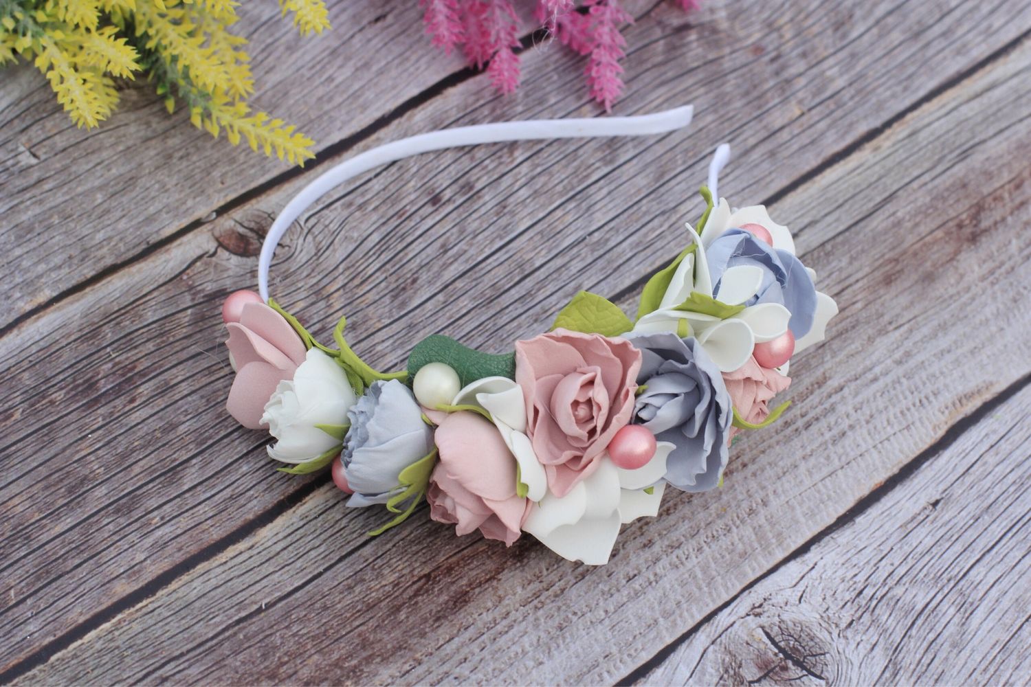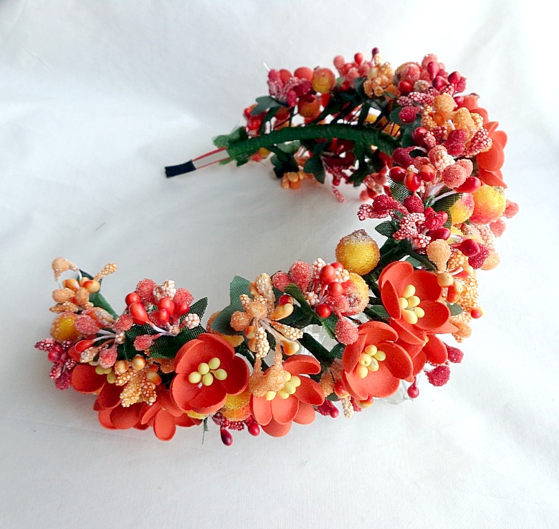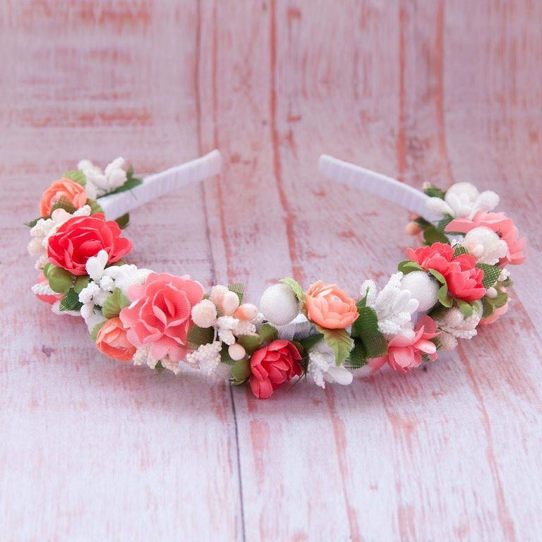 Варто зауважити, що не тільки троянди виглядають дуже гарно на такому аксесуарі. Чудово виглядають і квіти сакури, еустоми, фантазійні квіти. Особливо оригінальні квіти з атласних стрічок, виготовлені в стилі канзаші. З полімерної глини можна виготовити дуже дрібні квіточки, які виглядають дуже ніжно. Ефектні та неповторні ошатні обручі, декоровані намистинами та бісером. Ніжна чарівність випромінюють обручі з мереживними квітами та бусинами. А обручі з натуральним камінням виглядають і зовсім по-королівськи.