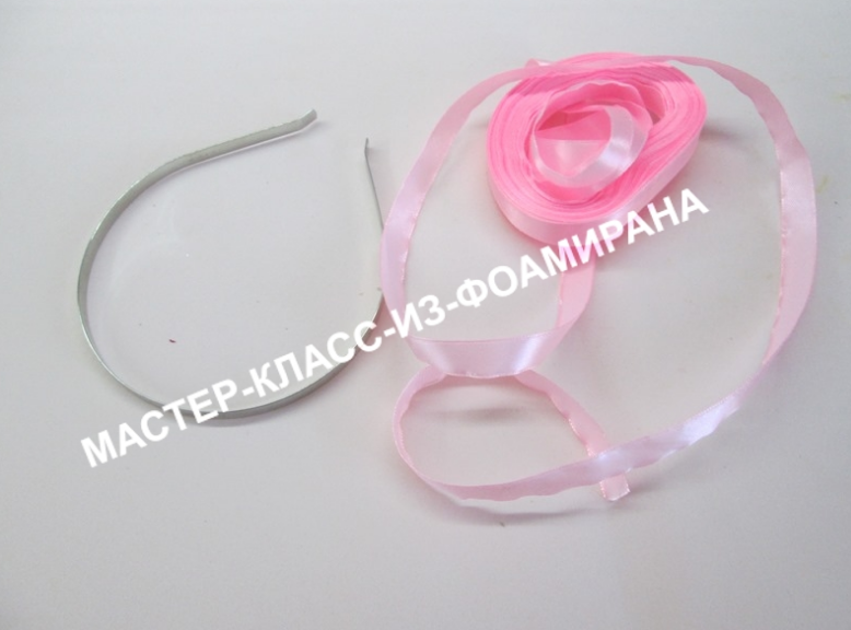 Якщо хочете, для плетіння такого обідка візьміть готові стрічки, які продаються у магазинах. Там же можна купити готові квіти з найрізноманітніших матеріалів – оберіть на свій смак. Квіти можна прикріпити до вашого обідка за допомогою тієї ж голки з ниткою, дроту чи клею – це залежить від матеріалу, з якого виготовлені ваші квіти.