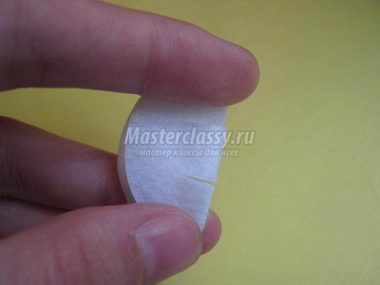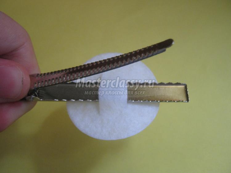 Приклейте квітку на шпильку: візьміть інший кружок фетру, складіть його навпіл і проріжте по центру.