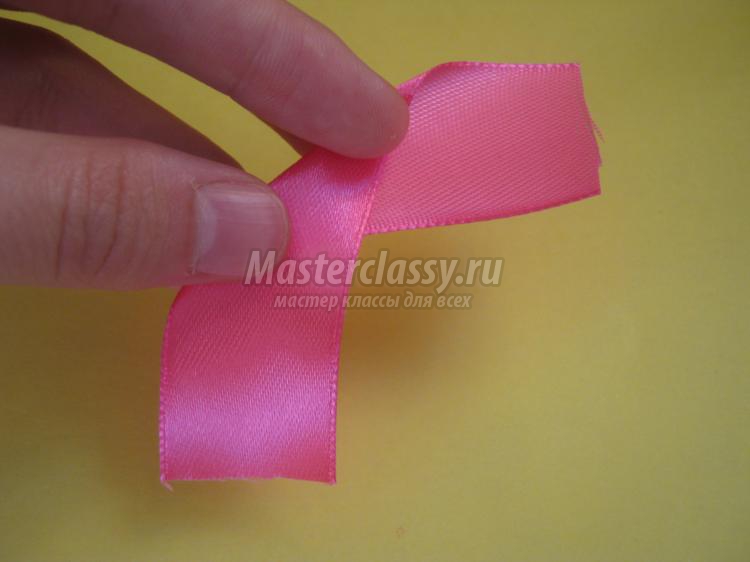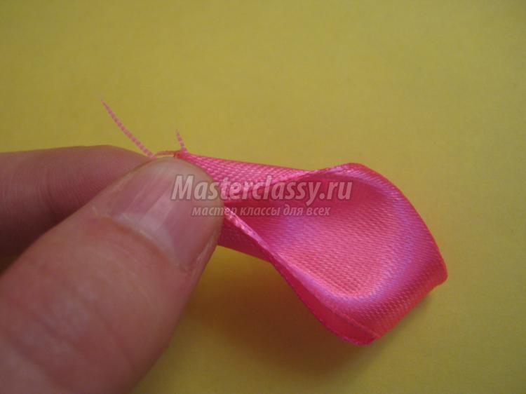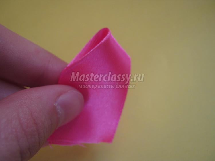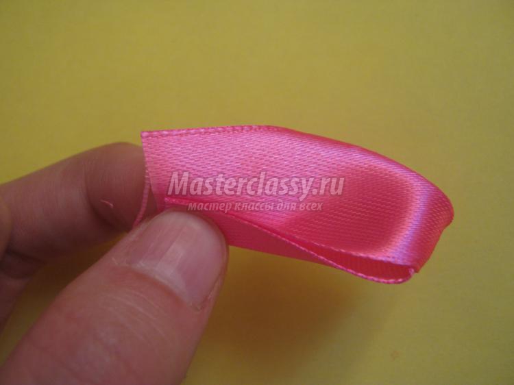 Сформуйте пелюстки. Складіть відрізок стрічки навпіл (див. на фото), потім знову навпіл.
