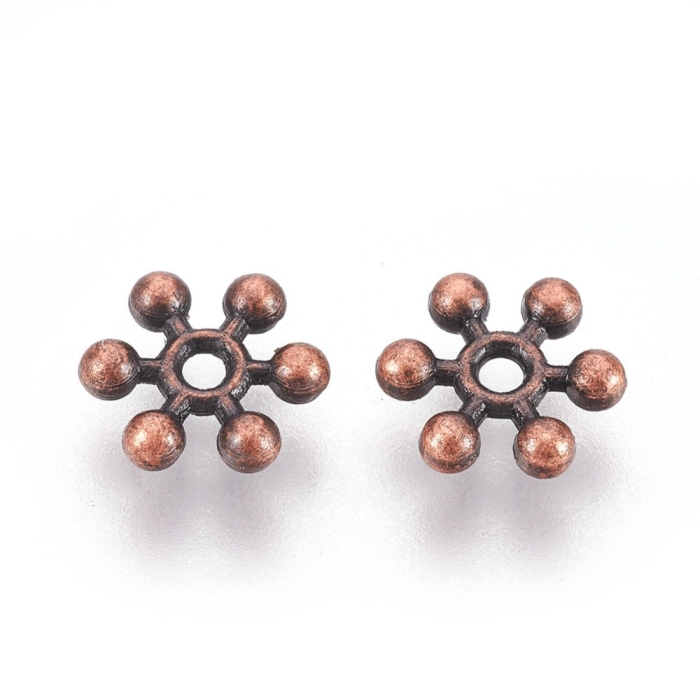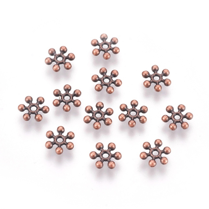 Намистини-Роздільники, Сплав, Сніжинка, Колір: Мідь, Розмір: 8.5х2.5мм, Отвір 1.5мм, (УТ100017330)