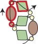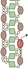 9. Дойдя до начала цепочки, протяните нить по другой кромке цепочки через бисер и бусины, выделенные на схеме красным цветом.