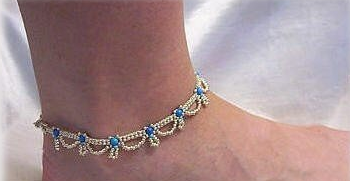 Не стоит создавать слишком массивные, многорядные браслеты для ножки. Он должен выглядеть изящно, воздушно. Вниманию рукодельниц предлагается второй вариант. Метод позволит сделать таким способом комплект. Это может быть браслет, колье и украшение на ногу. Немного напоминает восточный мотив. Ведь именно оттуда пришла мода на такие украшения. В этих странах украшения на ноге обозначают принадлежность к определенной касте. У нас все намного проще и браслет смотрится как простое украшение.