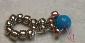 2. Добавить два ряда по две бисерины, фиксируя накрест. Дальше нанизать на оба конца лески по одной бисерине и присоединить бусину таким образом, как показано на изображении.
