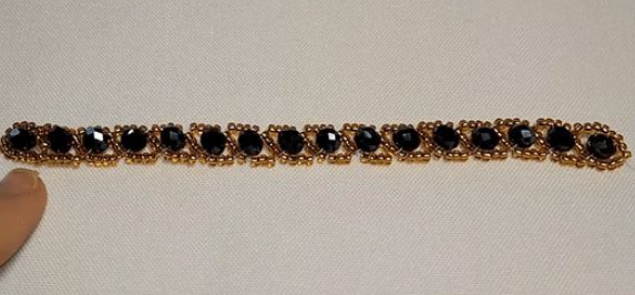 9. Присоединить бусину. Каждый лепесток фиксировать с соседним рядом, используя четыре крайние бисерины. Повторить шаг по всей длине.