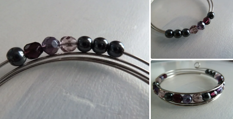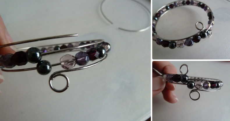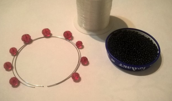 3. После того, как все бусины окажутся на проволоке, согнуть в колечко противоположный конец проволоки.