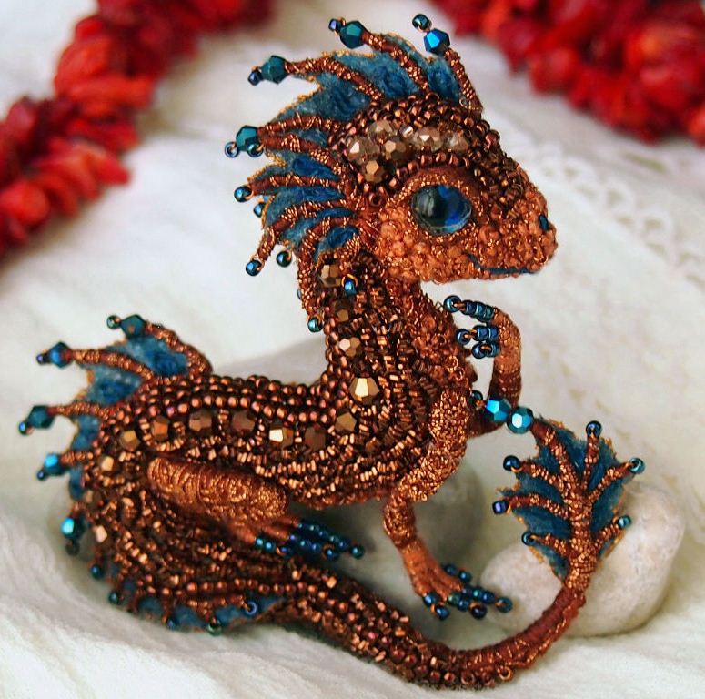 Здорово выглядят броши с изображением сказочных животных: единорогов, драконов, Жар-Птицы. Особенно когда при их создании используются разные оттенки золотистого и серебристого цвета.