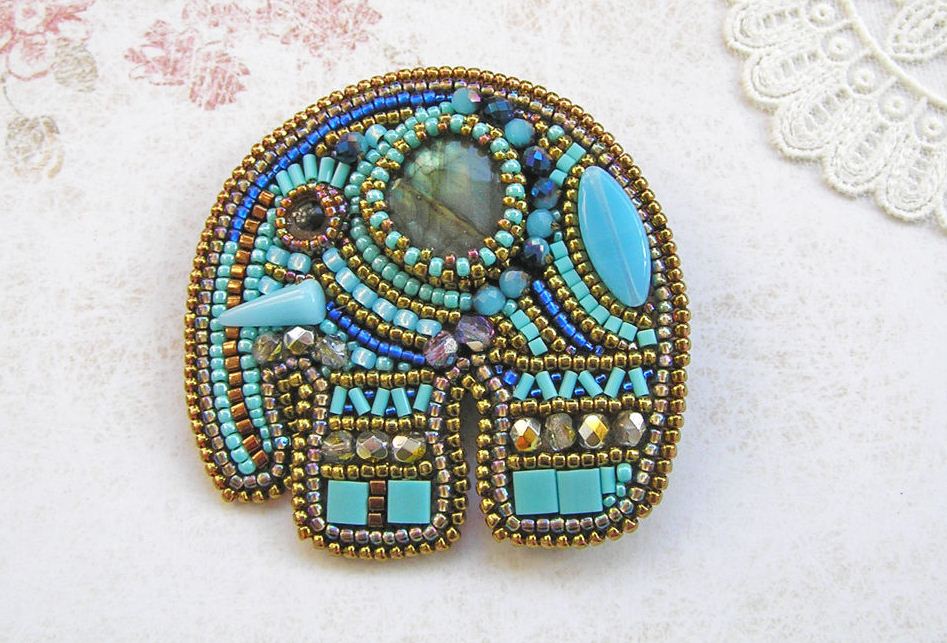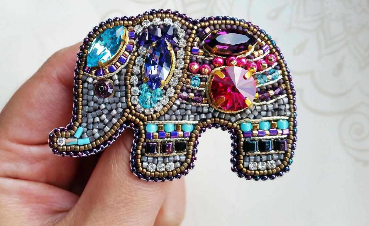 Очень колоритно смотрится в качестве броши голова или фигурка слона, украшенного в индийской традиции. Создается она так же просто, как и предыдущие модели: на кусочке кожи или фетра создается изображение и потом прикрепляется к застежке для браслетов.