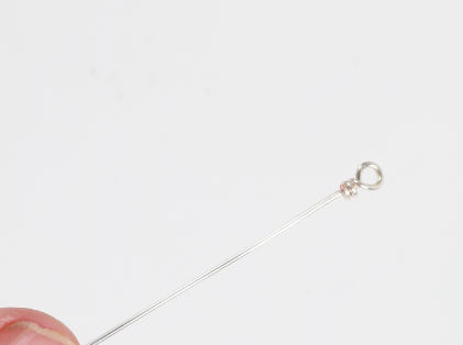 2. Из проволоки серебряного цвета сделать отрезок длиной около 15 см и сформировать колечко на одном конце.