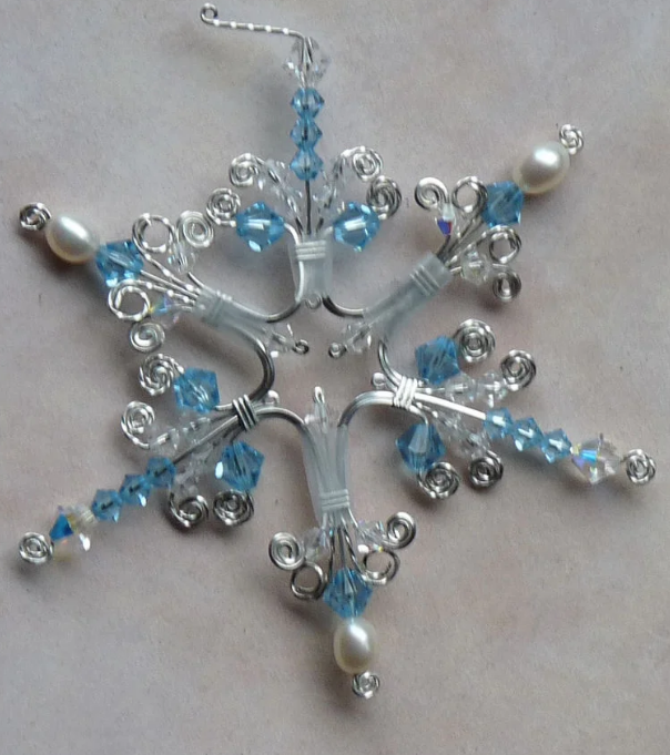 11. При помощи тонкой проволоки в тон изделия, зафиксировать крупную граненую бусину в центре.
