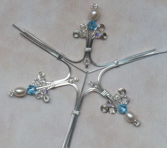 17. На отдельные кусочки проволоки надеть граненые бусины. С одной стороны, сформировать небольшой крючок, а с другой – витую петельку.
