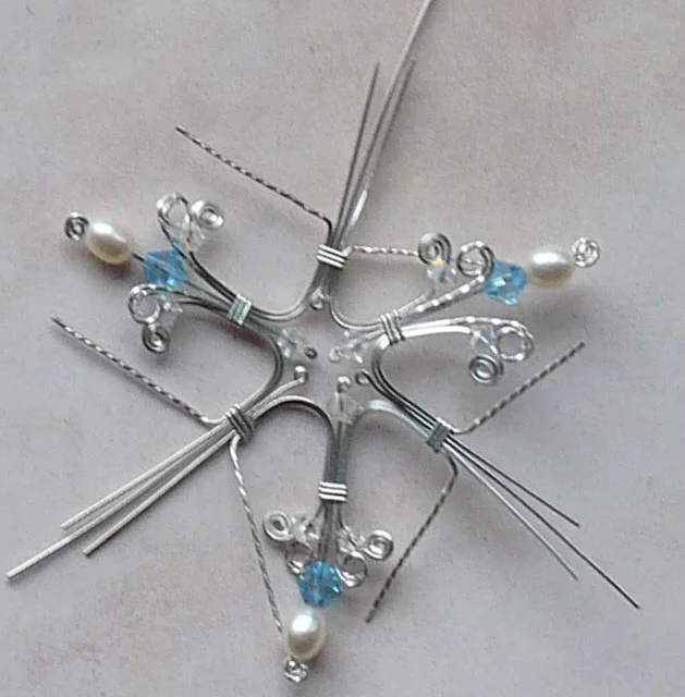 14. Пять отрезков проволоки сложить параллельно, обвить аккуратно проволокой, концы развести в стороны. Придать полусферическую форму.