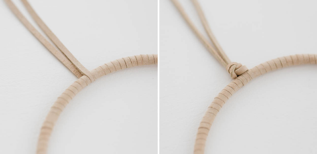 1. Обруч обмотать замшевым шнурком, аккуратно накладывая параллельные витки.