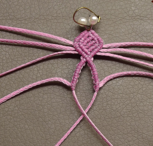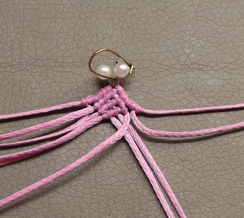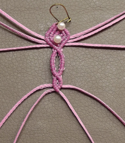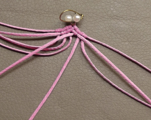 12. Завязать три узла и перейти на левую нить, повторив предыдущие шаги. Связать два фрагмента.
