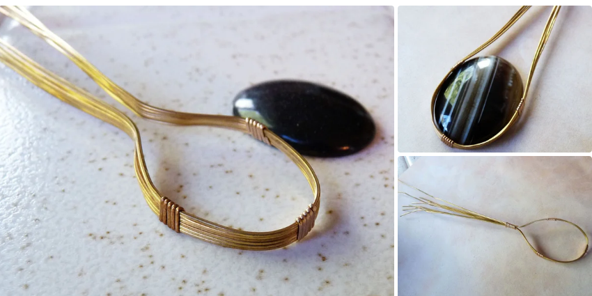 8. Мягким фетром натрите камень, выведите завитки на его лицевую сторону. Медная проволока податлива, поэтому разместить их можно на свое усмотрение. Петлю для подвески обвить проволокой, обрезать оставшиеся концы с изнаночной стороны. Первое wire wrap обучение на этом этапе можно считать законченным.