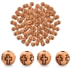 Легкие круглые бусины из акрила с имитацией древесины. Украшены узором в форме креста.