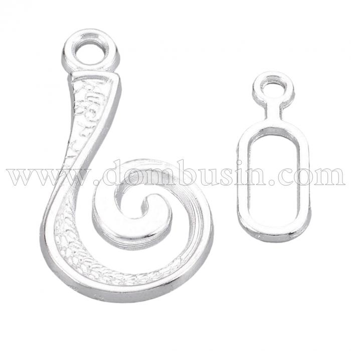 Застежка Крючок с Кольцом, Металл, Цвет: Серебро, Размер: Крючок 25.5х13.5х1.5мм с Отв 2мм, Кольцо 16.5х6х2мм с Отв 1мм, (УТ0016954)Размеры: