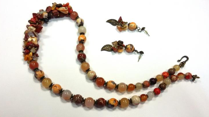 Ось такі вироби створюють майстрині, які тільки розпочинають свій шлях у світі рукоділля. Тут використовувалися намистини з натуральних каменів та крихта , яка зафіксована за допомогою пінів.