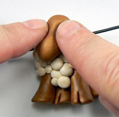 6. Покрити носик слюдяною пудрою. Маківку закрити кульками зі світлої глини.