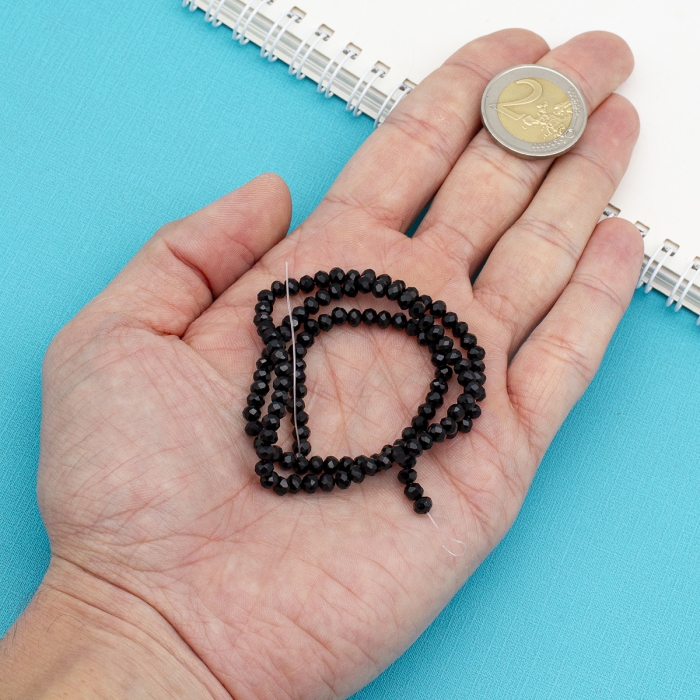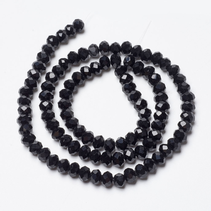 Намистини Скляні Імітація Нефриту Гранені Рондель Непрозорі Колір: Чорний