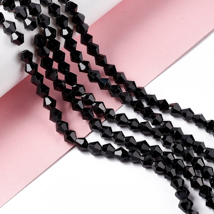 Намистини Скляні Імітація Австрійського Кришталю Гранені Біконус Колір: Чорний