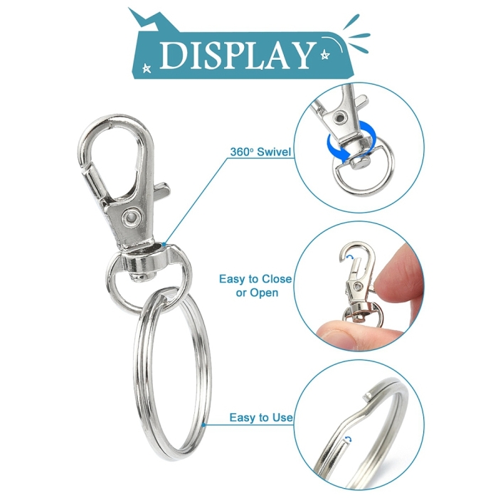 Практичний набір для створення брелоків та аксесуарів своїми руками. Всі елементи мають платинове покриття, що забезпечує естетичний зовнішній вигляд та захист від корозії. Ідеально підходить для творчості у стилі DIY, створення подарунків та персоналізованих аксесуарів.