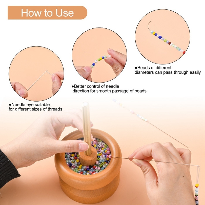 Універсальний інструмент для швидкого та зручного нанизування дрібного бісеру. Завдяки основі, що обертається, і спеціальній формі голки, бісер сам підскакує на нитку при русі, значно скорочуючи час роботи. Підходить як для професіоналів, так і для новачків.
