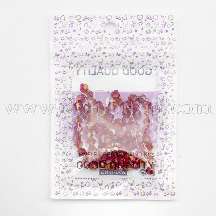 Намистини Гальваніка Скло АВ-Колір, Грановані, Біконус, Колір: Червоний, Розмір: 4х4мм, Отвір: 1мм, близько 87шт / 33.5см / нитка, (УТ000007103)