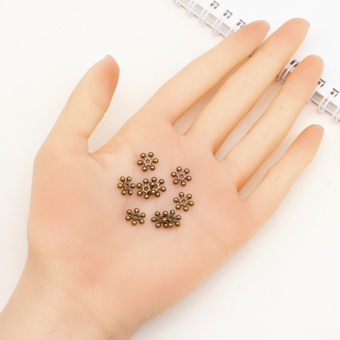 Намистини-Роздільники, Сплав, Форма: Сніжинка, Колір: Бронза, Розмір: 10х2.5мм, Отвір 1.5мм, (УТ100015106)