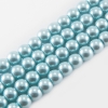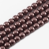 Перли Намистини Скло 8 мм, Глянцеві, Круглі, Колір: Чорний, Діаметр: 8 мм, Отв-тя 1мм, близько 90шт / 72см / нитка, (БА000000454)