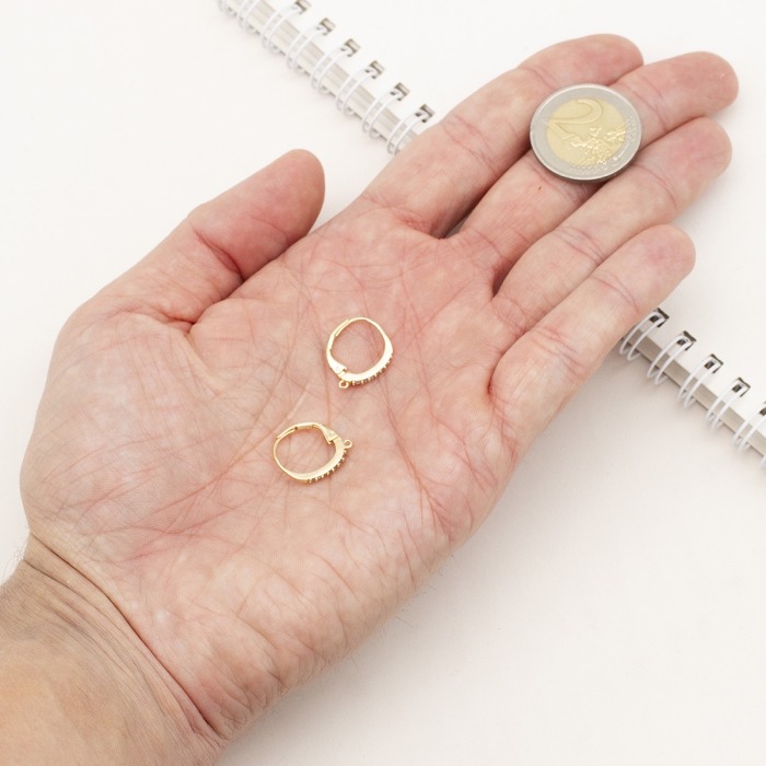 Швензи, Латунь Фіаніти, Англійська застібка, Позолота 18К, 17х14х2мм, Пін: 0.7мм (УТ100017764)Размеры: