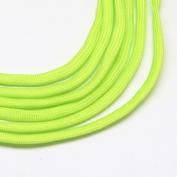 Шнур Паракорд Поліестер та Спандекс 7-ми жильний Розмір: 4-5мм Колір: Салатовий близько 100м/зв'язка Шнур Паракорд - це неймовірно міцний, гнучкий і універсальний матеріал, який ідеально підходить для створення стильної та неповторної біжутерії. Популярність паракорду зумовлена не лише зносостійкістю та міцністю, а й розмаїттям кольорів, які відкривають безмежні можливості для творчості. Приклади використання шнура паракорд: ● Браслети: класичні плетені браслети (можна створювати браслети різних стилів, таких як «Кобра», «Рибий хвіст», «Ланцюжок» та багато інших), браслети з намистинами, багатошарові браслети. ● Намиста та кольє: прості намиста, намиста з підвісками, макраме-кольє. ● Сережки: плетені сережки, пензлики з паракорду, сережки з підвісками. ● Ремінці для годинника: плетені ремінці, комбіновані ремінці. ● Пов'язки на голову та обідки: плетені пов'язки, прикрашені обідки. ● Брелоки та підвіски: міні-браслети, фігурні підвіски ● Інші ідеї для прикрас: пояси та ремені, чохли та футляри, пов'язки на зап'ястя або кісточку. Переваги паракорду у виготовленні прикрас: ● Міцність та кріплення: Паракорд дуже міцний, тому прикраси з нього стійкі до зношування. ● Гнучкість та легкість у роботі: легко піддається плетінню та зав'язуванню вузлів, що дозволяє створювати складні конструкції. ● Різноманітність кольорів та текстур: широкий вибір кольорів дозволяє створювати унікальні та яскраві вироби. ● Легкість у догляді: Паракорд легко миється і не поступається своїми властивостями при тривалому використанні. Прикраси з паракорду – це поєднання стилю, міцності та індивідуальності. Завдяки своїм чудовим властивостям паракорд дозволяє створювати найрізноманітніші вироби, від браслетів і намист до ремінців для годинників і брелоків. З нашим високоякісним паракордом ваші творчі проекти втілюватимуться в життя легко та із задоволенням. Створіть оригінальні прикраси своїми руками сьогодні!