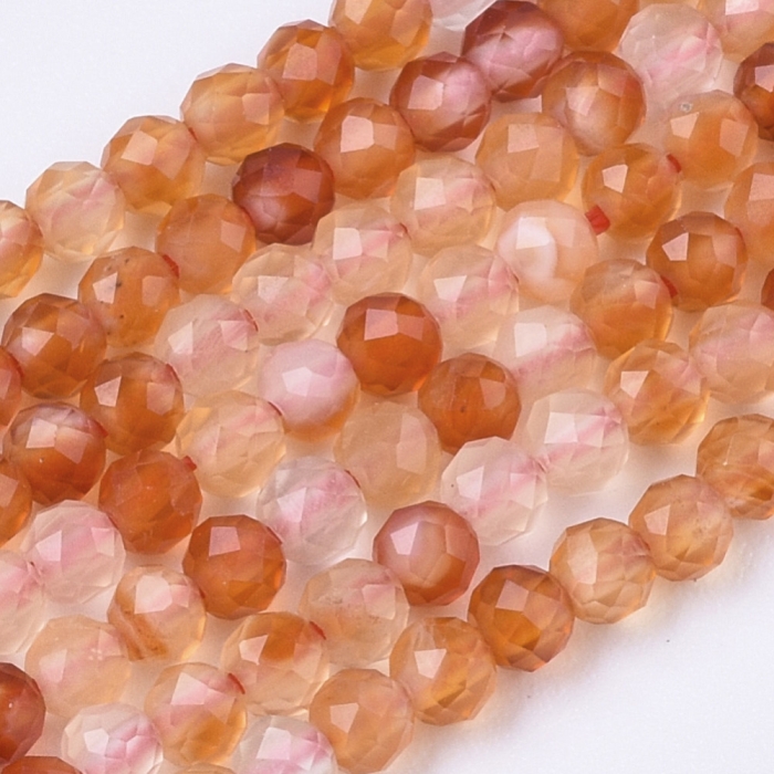 Намистини Натуральний Червоний Агат/Сердолік, На нитках, Грановані, Круглі, Незабарвлені, Країна походження каменю- Бразилія,