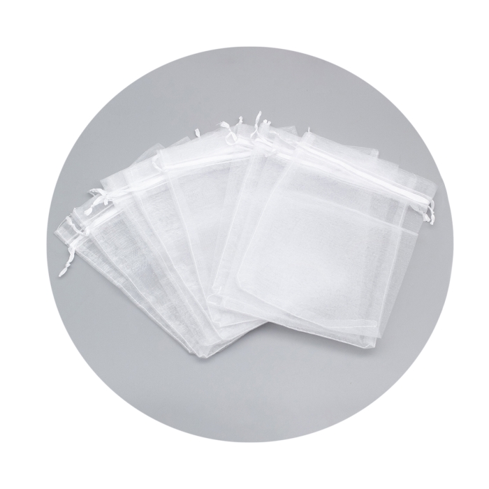 Подарункові мішечки з органзи з куліскою - це елегантні аксесуари для пакування подарунків, які поєднують легкість, стиль та практичність. Вони виготовлені з прозорої тканини органзи, що надає виробам повітряного та витонченого вигляду. Мішечки оснащені куліскою – тонким шнурком, що дозволяє легко закрити їх та надійно зафіксувати вміст.