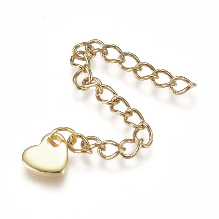 Ланцюжок Подовжувальний з Кулоном Серце з Нержавіючої Сталі, Золото, 60мм, Ланка 4х3х0.5мм, Кулон 6х7х1.3мм, (УТ100030015)Размеры: