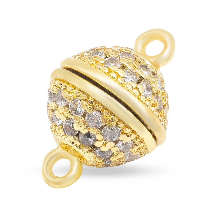 Застібка Магнітна з Латуні з Фіанітами, Кругла Колір: Золото Колір фіанітів: безбарвний
